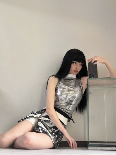 A fusion of futuristic design and functional versatility, the Obscura Zipper Top is designed with a brushed metallic finish, the fabric creates a distorted chrome effect, reflecting light with move...